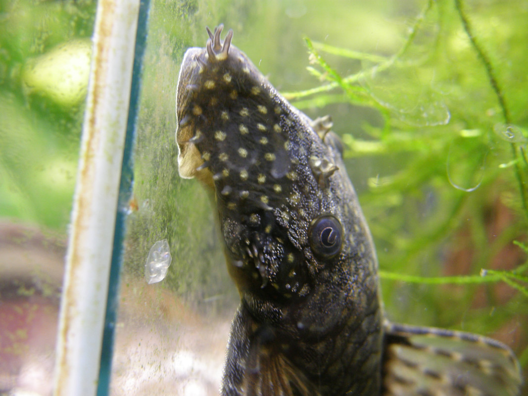 Преди време отделих два Анциструса с надеждата да хвърлят хайвер. Единият от тях има много големи рога на главата си и си личи че е мъжки. Другият нямаше никакви. На големина са еднакви - около 8 см. Не мога да кажа на колко време са, но година със сигурност имат.