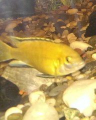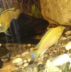 Цихлазомите от снимките от около 1 седмица влизат и излизат в една делвичка, като по-дребната от снимка 1 се задържа повечко вътре. Тази от снимка 2 е по-едра от другата, тя главно обикаля около делвата.Когато се хранят идват и двете да ядат гонят рибите който минат наблизо .Мисля че 1 е женска ,а 2 мъжка така ли е ? Също така искам да попитам дали мога да преместя делвата ,защото сега е отзад и не се вижда какво става вътре ?