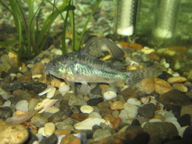 Сега си седи самотен в другия аквариум - забит в растенията, заедно с даниото.По-нататък ще му осигуря достойна компания - точно като за него :popcorn:
