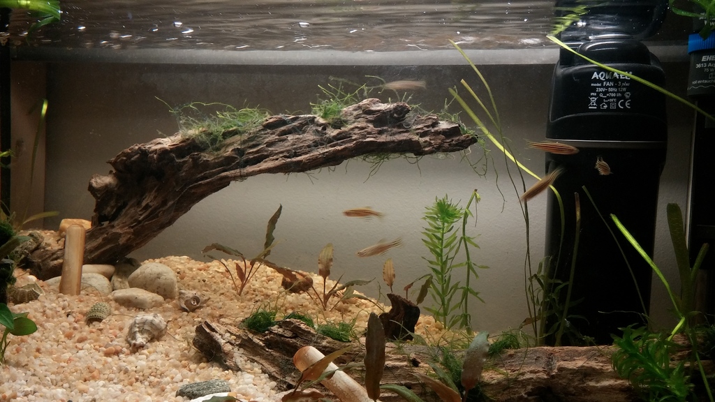 От днес обитатели на аквариума са 6бр. Данио рерио и 3бр. Коридорас джули.