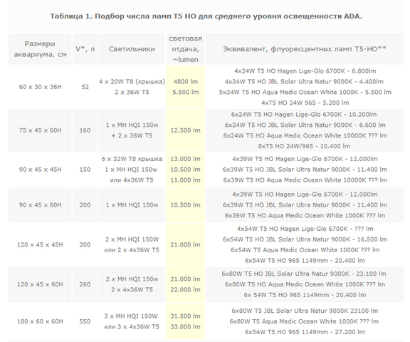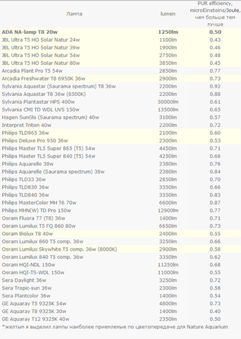 Следователно за акваристите използващи лампи с дневна светлина е необходимо данните от Lux - метъра да се умножат по коефициента на използваната лампа - практика отдавна използвана в хидропониката.