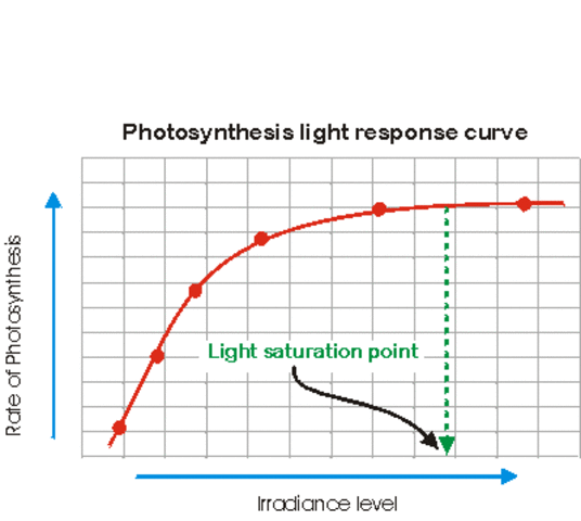 Тук  LSP (Light Saturation Point), това е точката на насищане на фотосинтезата - ниво на осветеност при отсъствие на лимитиране спрямо СО2 и хранителни вещества при, което последващо увеличаване на осветеността не довежда до засилване темпа на фотосинтеза, или предела за растенията: