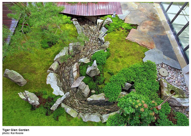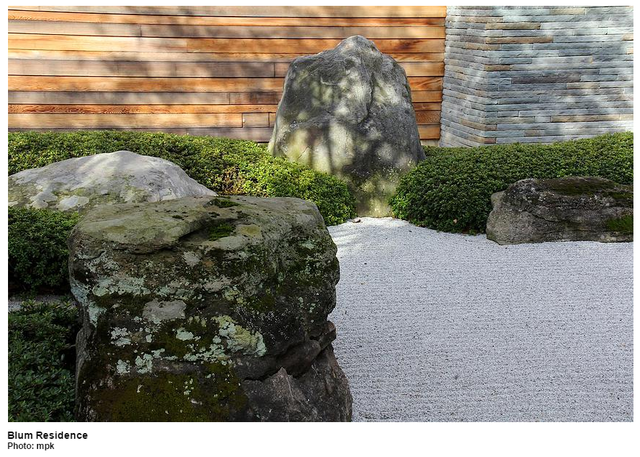 ***Като поразгледах всички предложени  на сайта му градини, за да подбера по- подходящи  съгласно обсъжданите теми в предния пост, лично аз имам някои забележки към неговите модели и пресъздавания като едно от най- драстичните различия е този  емблематичен, висок, главен камък Shumisen  за който  има и в предната статия... пресъздаващ Непреместваемата планина...пък той го е забил в чакъла и на почти същото ниво.... :kreshtja: хахах голям критикар се пръкнах.. както и да е. Той е творец. Вероятно  известно отклонение от традициите се допуска. Но въпреки всичко, има хармония в работите му и е инетерсено пречупването на източните виждания, през ръцете и  въображението на един западен човек.*** (бел. fam)