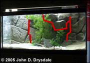 Е, как искате да изглежда вашият фон? Обли скали ли искате или назъбени? Големи скали или малки? При проектирането на моя фон аз разгледах снимки на скални форми в книги, прегледах дизайни на търговски аквариумни фонове, а гледах и някои от другите направи-си-сам фонове в този сайт. Като цяло придобих обща представа как искам да изглеждат моите скали... и след това просто го направих. Ключовите елементи в дизайна ми бяха да направя фона си да изглежда много триизмерен, с големи процепи между скалите и скални изпъкналости, които щяха да създават готин сенчест ефект в крайния продукт. Също така реших, че фонът ми ще се простира и по лявата страна на аквариума ми, така че няма да е ограничен само от гърба.