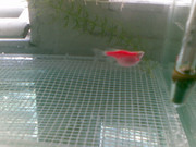 Отделих я от общия аквариум от мъжките, днес щях да пусна и мъжките но вече беше мъртва. Направих и дисекция т.е. натиснах и корема излезе много вода.