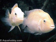 Щом "клиентите ги носят" и хвърля хайвер в дупки, сигурно е бял Cryptoheros nigrofasciatus. Не е лабиринтова рибка, а доста атрактивна цихлидка. Ако е Cryptoheros nigrofasciatus, ще имаш проблеми с растенията и грунда.