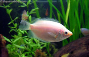 целуващото гурами е полезно за регулиране растежа на водорасли в нови аквариуми,тъй като внимателно ги обира от раститилноста,без да я уврежда. рибите трябва да са в голям съд с жилави растения като тайландска папрат,амазонка,криптокорина,растенията с меки листа ще бъдат изядени!почти невъзможно е да се определи полът на екземплярите,двойките полагат плаващи зърна