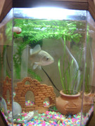 Аз пък напук на горенаписаното те съветвам да си я гледкаш,аз винаги имам диви рибки в аквариума си,на рибките им е готино,игриви са повече от останалите,нямам забележки.Нямат по-специялни изисквания към храната-каквото ядат рибките такова ядат и те.