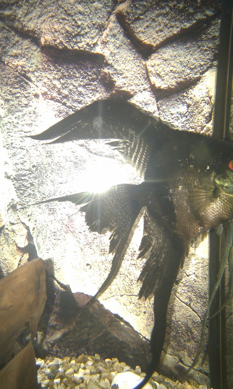 А иначе на останалите снимки жълтото по гърба на белия скалар си е оцветяване. На първия черен скалар дето са му нацепени перките ми се вижда че очите му светят и се е наперушинил точно както когато налита да се бие.