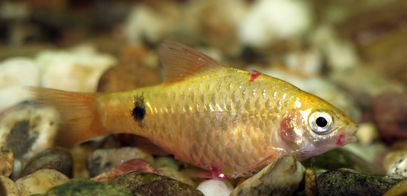 Температурата от снощи е 26-7 градуса. Сега щях да сменям водата, но забелязах Барбусите. Снощи нямаха вид на болни... Държът се нормално, игриви са... може да е начален стадий или пък не...