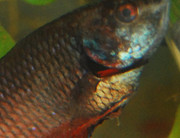 взех красива двойка възрастни бети чувстваха се и изглеждаха перфектно и реших, че първо тях ще пробвам да размножавам отделих женската в един буркан около три литра след четири дена ги събрах в размножителен аквариум (3 литра). Мъжкия веднага почна да я бие и не издържах на гледката и пак ги разделих (женската в буркана а мъжкия в общия) женската имаше леки разкъсвания по плавниците, но се оправи и е доста жива и е пълна с хайвер. Обаче мъжкия от тогава (преди 4-5 дена) много муден лежи, не яде и започна да се образува като мухъл на върха на долния плавник (или перка незнам как се казва) както и на опашния. Забелязах и, че по съклото има много малки бели точици и нещо като нишки но немога да определя червейчета някакви ли са или алгии или какво, сега са понамалели като количество. Забелязах също, че мъжкия дясната перка по не я ползва и я държи прилепнала по тялото, а от дясно също има една бяла черта от главата към опшката, но няма мухъл. Сега ги събрах пак да ги размножавам, но той не реагира . Тя  се дуе и го гони, а той лежи (сега аквариумчето е без грунд и много растения в единия край).