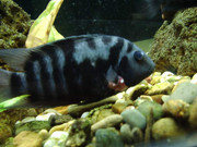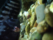 Имам от около 4 месеца мъжки нигрофасциатум, но още първия ден когато го пуснах в аквариума забелязах че има перде на едното око и някаква рана от същата страна малко  след хрилното капаче. В началото поради стреса от новата среда рибата се бе заклещила леко в една дупка и си помислих че раната е от това, но все повече ме съмнява това да е причината, тъй като вече 4 месеца не заздравява.През цялото време рибата е сравнително активна като дори имаше и потомство (имам и женска която е в отлично състояние). Преди няколко седмици я лекувах с "JBL Furanol", казаха ми че това е едно от най-добрите лекарства за бактериални инфекции на пазара (включително и за "перде" на очите), но нямаше никакъв ефект- нито окото се оправи, нито раната заздравя.В момента рибата е относително нормално активна, въпреки че е леко по-мудна, но това го отдавам на факта, че тя е почти сляпа с едното око и губи известна координация. Преди два дена забелязах че върху раната и в ъгъла на окото са се появили бели островърхи точки (на едната от снимките съм отбелязал със стрелки къде са тези точици). Моля за съвет с какво може да се лекува окото и раната, а също така дали има връзка между тях двете или е съвпадение (почвам да се съмнявам да не е туберкулоза).