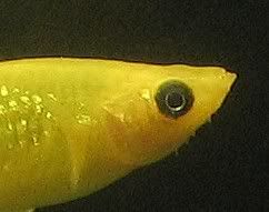 по главата и предната част  на тази риба се появи нещо като паразит.