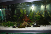 Смените на водата са ти несериозни. По-добре сменяй 15л на 5-7 дни с престояла и темперирана вода.