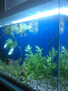 Не знам защо, но по снимката имам усещането, че аквариума е сглобен съвсем наскоро. Прекалено чистичко, невкоренени и умърлушени растения...да не си направил старта и да си напускал веднага рибите вътре? Ако е така - там ще да е проблема.