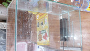 За целта на аксперимента ще ползвам 15 литрово аквариумче. За филтрация ползвам конструкция с вграден съмп вътре в аквариума. Водата влиза на самотек през гъба, после минава през сипоракс мини на сера, след това през активен въглен и накрая помпата я връща обратно в аквариума. Ширината на съмпа и отворите са 5 см. Гъбата е едропореста/с по ситна просто не става/ Надявам се да се е получило ефекта на ует-драй филтъра. Помпата е с дебит 250 литра на час. Осветлението е 8 вата.