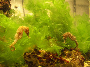 Морски кончета се гледат само с жива артемия! Тези все си кълвяха нещо по дъното но с времето отслабваха, едното умря, а другите върнах в морето. Възможно е да не им е понесла и температурата, защото като влизах вчера в морето нямаше никакви. Май месец за половин час можеше да напълниш една кофа, юни вече намаляха и тези ги хванах с много търкене един ден и то на едно място, вчера нямаше никакви с изключение на едно, което беше с рана на корема и едвам живо, можеше и да е "родило" току що или да е нахапано. Много е вероятно топлината да ги мори, защото цялото дъно е променено. Зелените водорасли умират и са много по-молко от преди, а брегът е засипан с изхвърлени и гниещи, камъните се покриват с една сиво-кафява лигава маса, някакъв различен вид водорасли, но лапините и раците ги ядат.