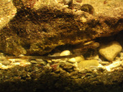 От 2-3 дни реших да пробвам с риби, иглите поотраснаха, като останаха три от тях. Едната я прехапа рак и остана без около 1/3 от тялото, въпреки което живя така близо месец. Взе да й пречи, защото вдигнах солеността на океанска и защото беше без част от тялото все да седи предимно на повърхността. Накрая все пак раците успяха да я изядат. Всъщност раците така се размножиха, че вчера една игла даде фира 2 часа след като я пуснах в аквариума. Просто изчезват, убиват ги, вкарват ги под камъните и ги изяждат. Еколозите трябва да вземат спешни мерки срещу тази напаст. Пуснах другите и хванах 4 лапини и две кучки/или три, така се крият, че не мога да ги преброя/. Сега разчитам голямата кучка да изяде раците. Лапините са супер, особено двете малки и средната, плуват като изоглавени, не им пречат актиниите, видях едната да се бута в пипалата. Голямата води люта битка с голямата кучка за една пещера с променлив успех, ту тя е вътре, ту кучката, и сравнително малко я виждам. Едната кучка е голяма за 30 л. вода, но това хванах. Оказа се, че рибите имат инстинкт към кепчета и мрежи, можеш да плуваш между тях и да почти да ги докоснеш, но видят ли кепче духват веднага. Изненадах се колко трудно се ловят. Отделно трябва да се направи специално кепче, тези от рибарските магазини не стават.