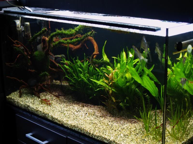 От месец съм в ново жилище и реших че трябва да сменя и аквариума,и ето това се получи!