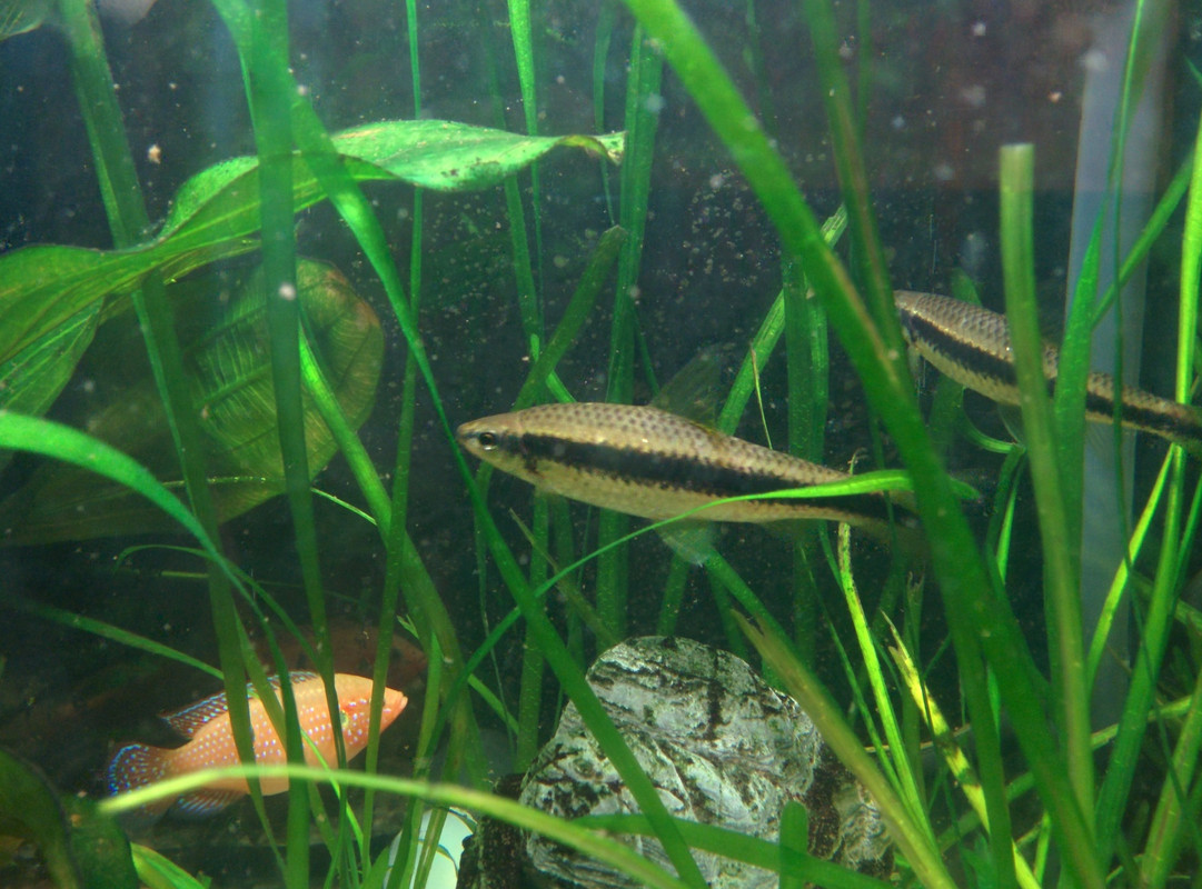 Вторият ми въпрос е за други 2 рибки, които имам - удължено тяло, с преминаваща по дължина черна ивица по средата. Не са проблемен фактор - просто ми е любопитно.