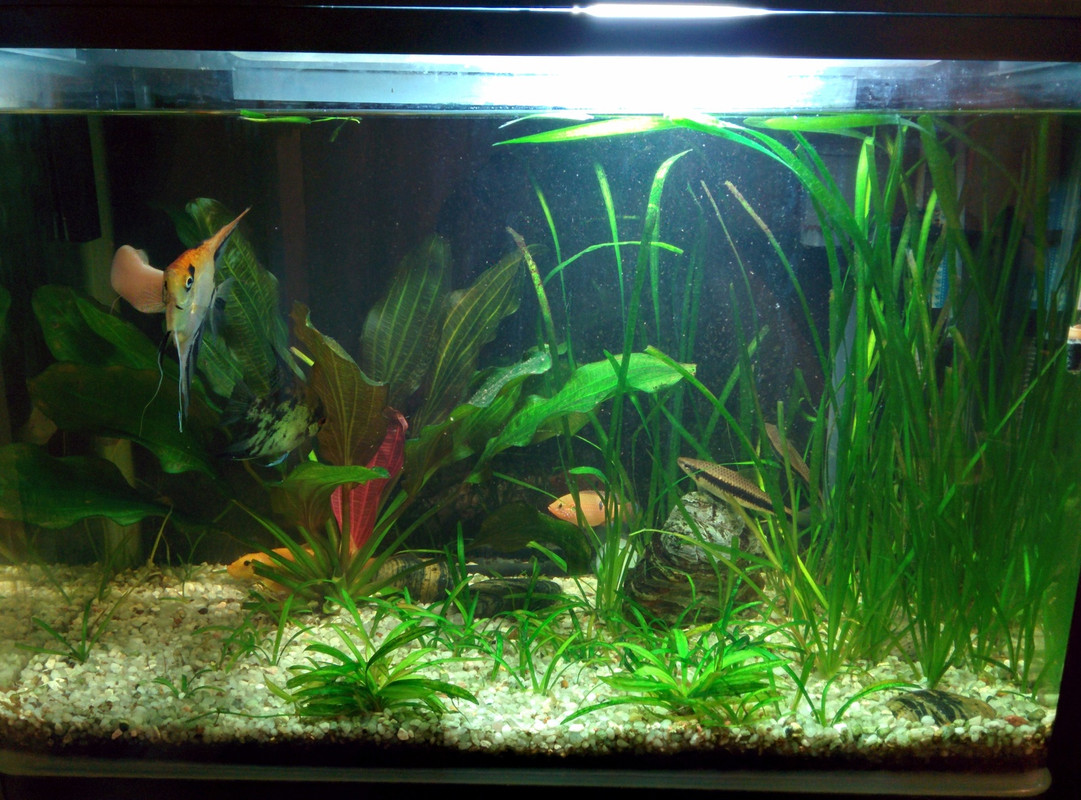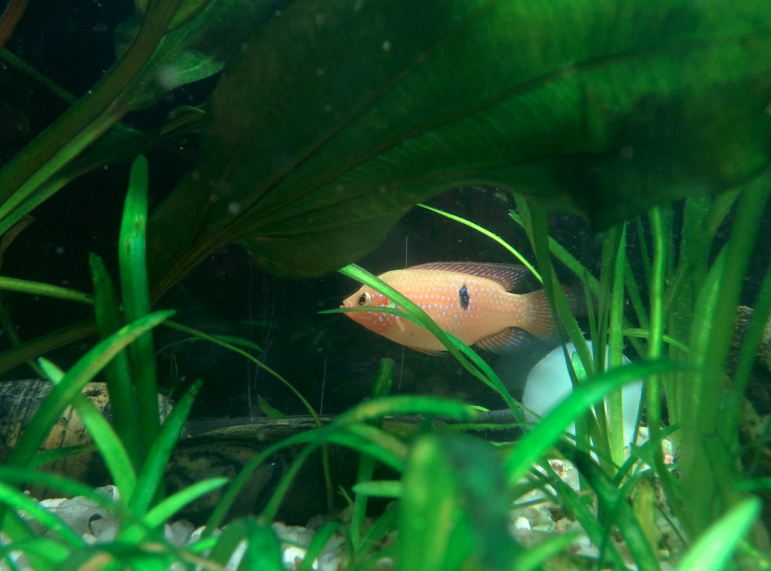 Проблема е че като го заселих в аквариума 2-3 дни беше кротък като монахиня, а след това стана страшно. До момента 2-ката 2ву годишни скаларии пазеха дисциплината и реда в аквариума, но сега малката на размер рибка-цихлид, взе страха на всички обитатели. Няма излизане на глава с този какраконджул! На големина е около 4 см., а нанася побой на който му падне,независимо, че повечето други обитатели са доста по-големи от него.