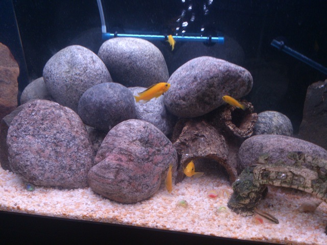 Повече не ходи в този зоомагазин. Ако е трябвало източно- и западноафрикански цихлиди да живеят заедно, природата така щеше да направи. Крибензисите предпочитат по-кисела вода с рН до 7.5, а малавийските цихлиди изискват алкална с рН 7.5-8.5.