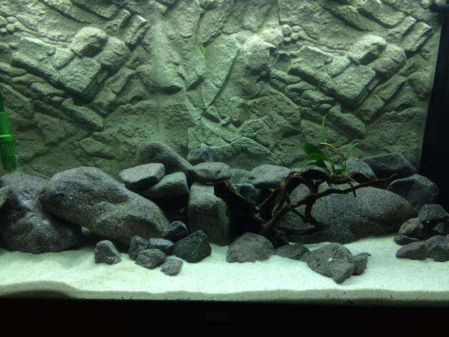Засега още няма какво да се коментира. Като пуснеш рибите, тогава :). Коренът и растенията не са много биотопни елементи от Малави, но щом ти харесват, да останат. Филтрацията ми е малко под въпрос дали ще е достатъчна. 1000 л/ч вътре и май толкова отвън (не съм сигурен Ехайма колко е) при 40 риби ... може и да се затрудни филтрацията. Тези цихлиди изскват по-добра филтрация и движение на водата, за това съобрази тези неща. Лампите ми се виждат множко. На твое място бих оставил само 1 пура по цялата дължина на аквариума. След като няма да има растения, кой знае какво осветление не ти е нужно, а и в естествена среда тези риби живеят на дълбочина 5-50 м., където осветеността не е особено висока. Може да добавиш някой по-масивен камък и да вдигнеш кучините във височина. Това е от мен.