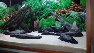Не е проблема само ,че ще го счупят нагревателя рибите.Проблема е ,че ще има по агресивни риби от малките и ще има по слаби завряни зад нагревателя и с отбелязан нагревател на тялото.Имал съм доста такива случая.За кабела не ми се е случвало с пираните го има този случай.Не бързай с рибите създай биологично равновесие и тогава.За аранжировка използвай плоски камани с по голям размер за да не могат да ги таркалят по дъното рибите като пораснат .За корените важи същото правило по големи и на тях може да прикрепиш папрати.Грунда ти е ситен за растения но ако искаш да посадиш някой ехинодориус ще ти кажа как да стане това.Взимаш една кутия за еднократна употреба за млечна салата с капак.Правиш и дупки с нагорещено шило а на капака правиш дупка да можеш да прекараш листата на растението .В кутията слагаш речен пясък 3,4 мм и посаждаш растението и след това прекарваш листата през дупката на капака и го затваряш.