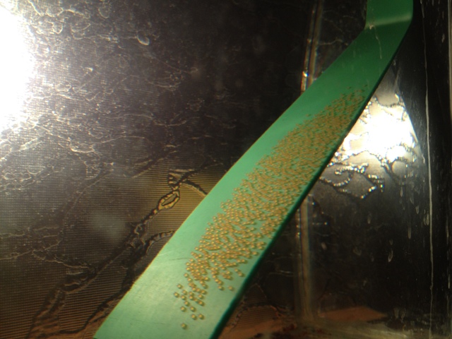После, като се излюпят малките, Майката и Таткото Скалари, ще ги поемат с уста и ще ги качват горе по водораслите. Грешно е да се мисли, че ги ядът, местят ги! (по-късно и ще ги ядът, ама сега ще обясня)