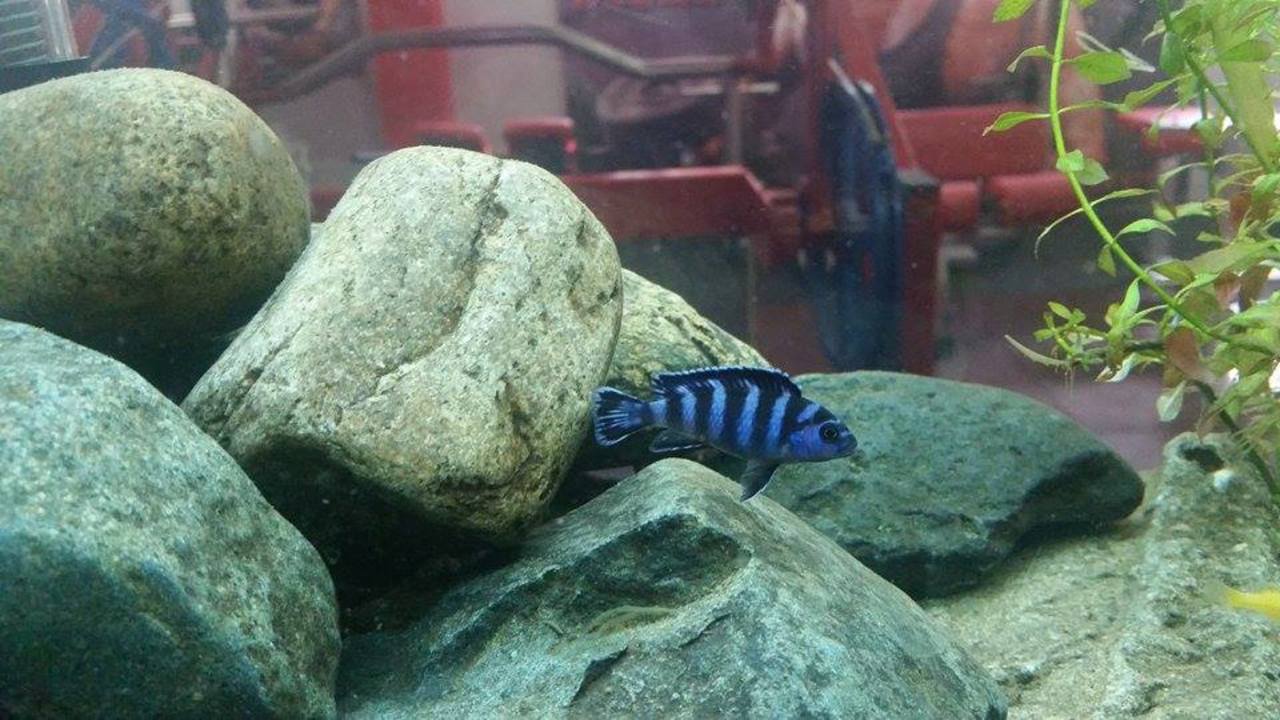 Здравейте! От 2 месеца имам аквариум и с голям интерес чета форума. Преди около 10 дена реших, че ще гледам африкански цихлиди в един 70 литров аквариум с размеди д/ш/в 65/25/45. Сложих камъни за укрития в едната част, а в другата имам няколко растения и взех от един зоо магазин 6 малки цихлида от неясен вид. В магазина също не знаеха какви са и че още са малки за да им бъде определен пола. На сляпо взех 2 сини и 4 жълти. Аквариумът е във фитнес зала и има движение покрай него по цял ден. Проблемът който имам е че това движение плаши рибите. Когато няма никой покрай тях те плуват свободно, но дори при най малкото забелязано от тях движение, всички изчезват между камъните. Казаха ми че им трябва време и ще свикнат, но от 10 дена вече не виждам никакво подобрение. Ще съм благодарен ако ми дадете някакви съвети  :-)