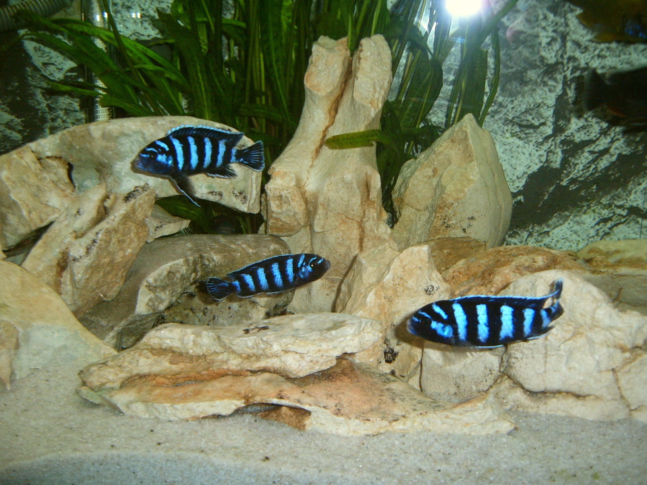 Наистина, доста са мършави и стресирани рибетата. Ако имаш път към Несебър, остана ми един Меланохромис Интеруптус за подаряване. Беше се скрил в пясъка и не успя да замине с останалите 50/60 малавийци които подарих, като сменях рибите. Иначе виж аз какви Демасонита имах,11 броя. Тук са две мъжки и жена им на снимката :) Така трябва да станат и твоите при добро гледане.