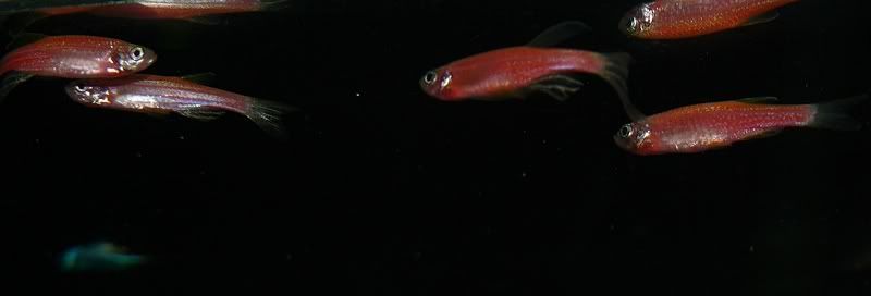 Гледайте какво данио си взех днес,бахти,не знаех че и такива правят,щото съм 99% сигурен че е изкувствено оцветено.Не можах да ги снимам добре защото са малкички и големи бързаци,а и все на повърхноста стоят и са неудобни за снимане: