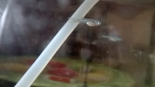 Взех един аквариум, около 6 литра, направих си мрежа за дъното, сипах вода, сложих дунапренен филтър, температурата за момента е около 26-27°С, сипах малко трипафлавин (3-4 капки). Довечера смятам да сложа 6 зебрички вътре, да ги храня няколко дни само със замразен хек и да им вдигна температурата на около 28-29°С и да ги чакам да снесат. Аквариумчето е далеч от прозореца, осветявам го с една 8Вт обикновена луминесцентна лампа. Искам да се пробвам да ги размножавам. :)