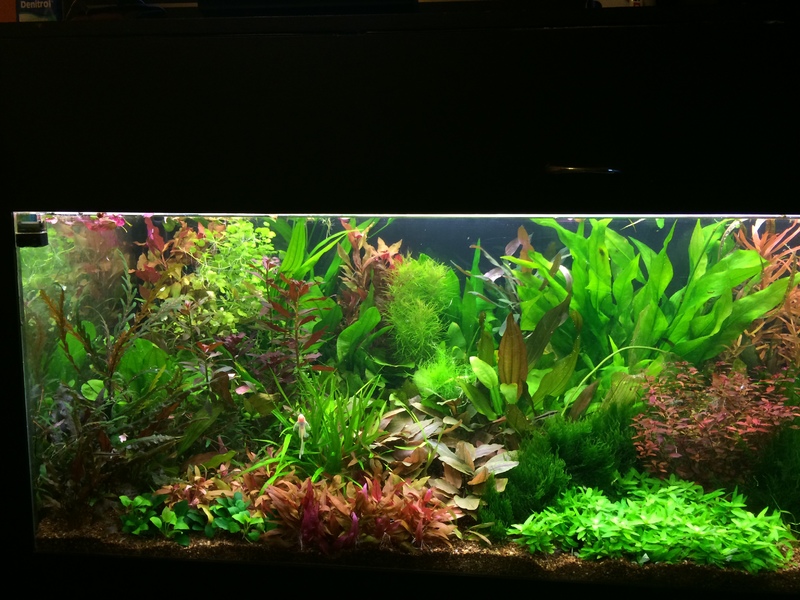 Аквариума е със осветление топла и студена бяла лед, около 0.35вата на литър. с цо2 и торене.