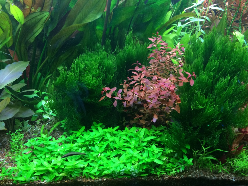 Althernathere mini, marsilea hirsuta, cryptocoryne nevilli, pygmea, micrantemum momnte carlo, Ludwigia mini super red, ludwigia inclinata "CURLY", Pogestemon Stellatus, Myriophillum Mattogrosso, Rotalla sp Ceylon, Staurgoryne repens, Limnophilla Aquatica, Floscopa Scandens 2 стръка в ляво най в дъното. Престих местоположение малко напред на Micrantemuma след засаждането.