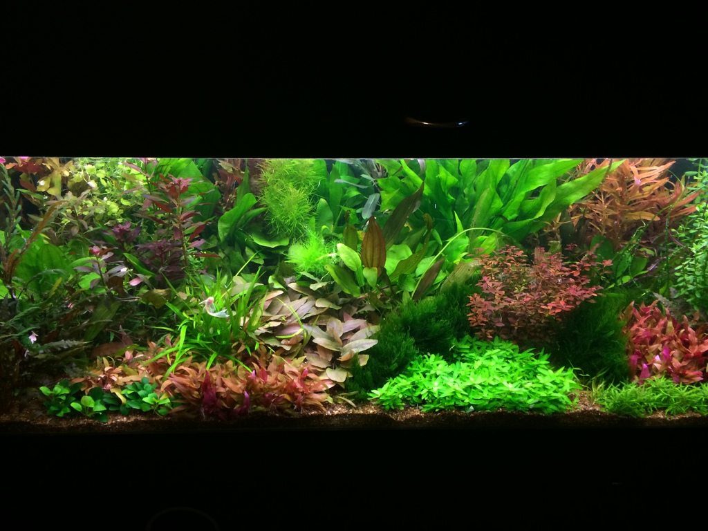 Аквариума е със осветление топла и студена бяла лед, около 0.35вата на литър. с цо2 и торене.