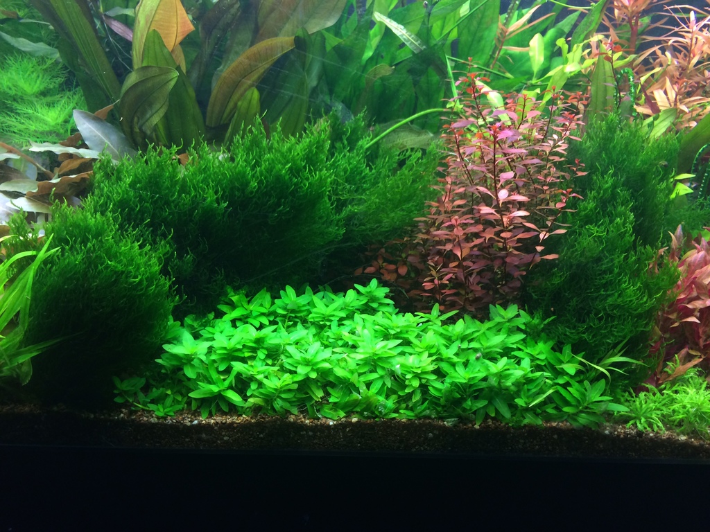 Althernathere mini, marsilea hirsuta, cryptocoryne nevilli, pygmea, micrantemum momnte carlo, Ludwigia mini super red, ludwigia inclinata "CURLY", Pogestemon Stellatus, Myriophillum Mattogrosso, Rotalla sp Ceylon, Staurgoryne repens, Limnophilla Aquatica, Floscopa Scandens 2 стръка в ляво най в дъното. Престих местоположение малко напред на Micrantemuma след засаждането.