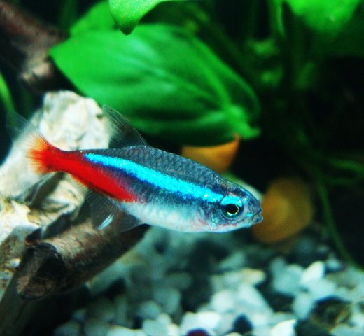 Колеги, ето и две снимки на аквариумните обитатели в наното ми - обикновен неон и охлюв ампулария!Smile