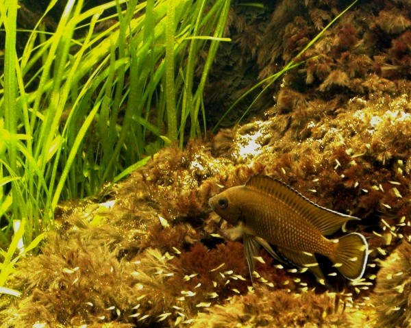 И пак си остава проблемът с цихлидите от Танганика, те  не са много толерантни с растенията. Валиснерията е издръжлива и ако положиш усилия ще се хване и ще тръгне да се разпростира, но постоянно ще бъде с оскубани и наранени върхове, което не е особено естетично(както се вижда и на тези снимки).