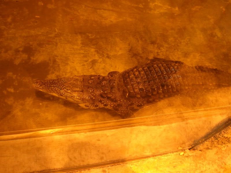 Крокодила Гена с много хелери и гупи около него (за съжаление не се виждат).