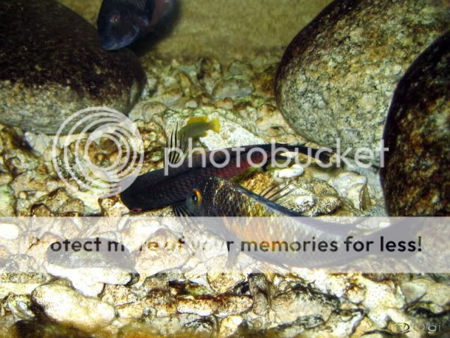 Мимо, това е хонджи, големите ги продадох, но накрая не тръсках женските и това е survivor-че, имаше още едно, обаче няколко дни не го виждам, нимбохромисите бродят все пак из аквариума.