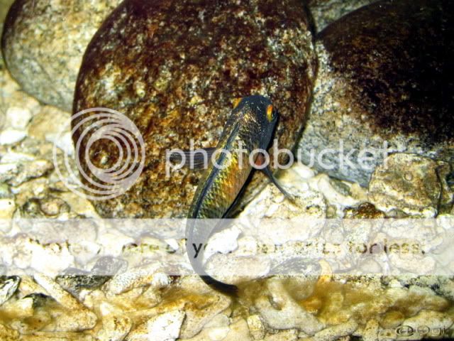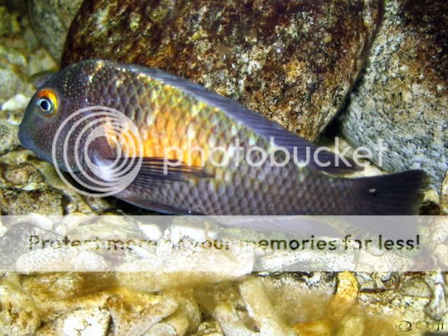 Мимо, това е хонджи, големите ги продадох, но накрая не тръсках женските и това е survivor-че, имаше още едно, обаче няколко дни не го виждам, нимбохромисите бродят все пак из аквариума.
