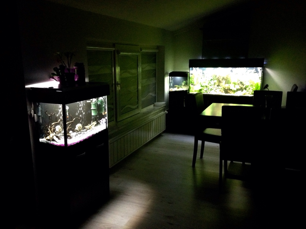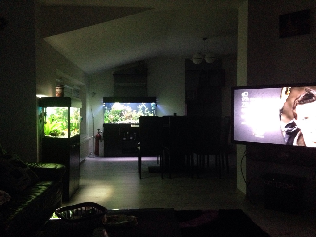 Тъкмо се чудех дали ако сложа втори аквариум в хола, ще стане прекалено... Но сега виждам, че изглежда добре и с два аквариума!  *YAHOO*