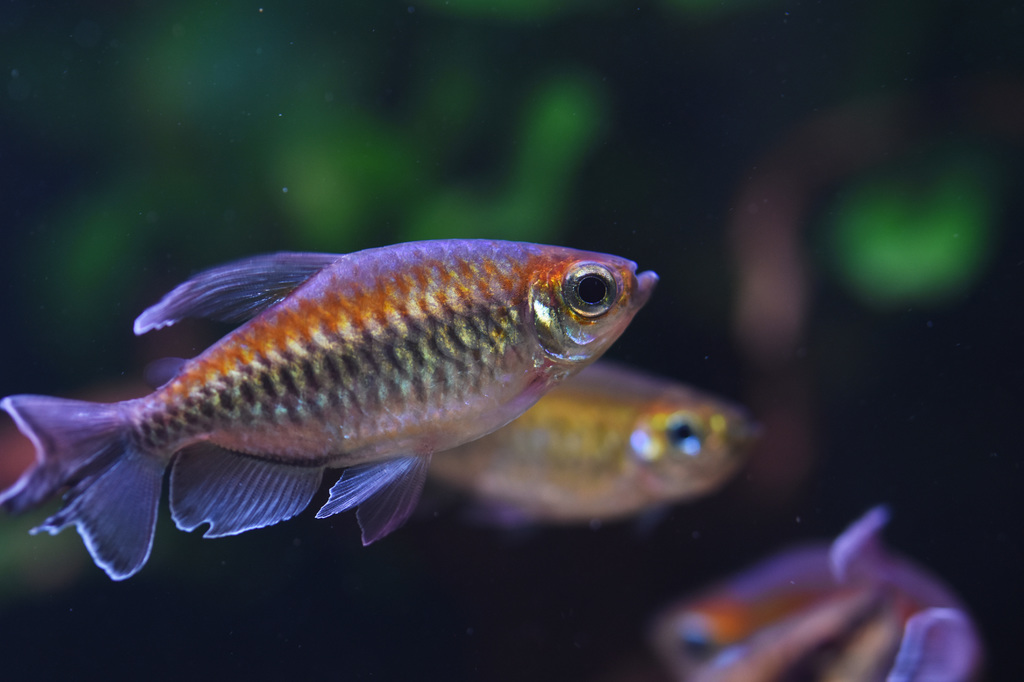 Една сценка със 2-та трихогастера и скаларията. (снимката не е обработвана по никакъв начин)