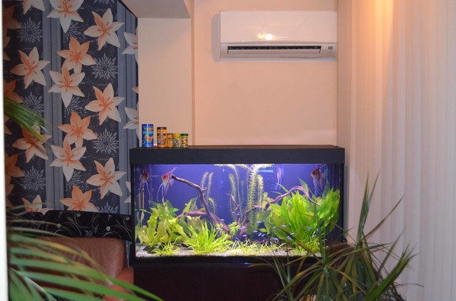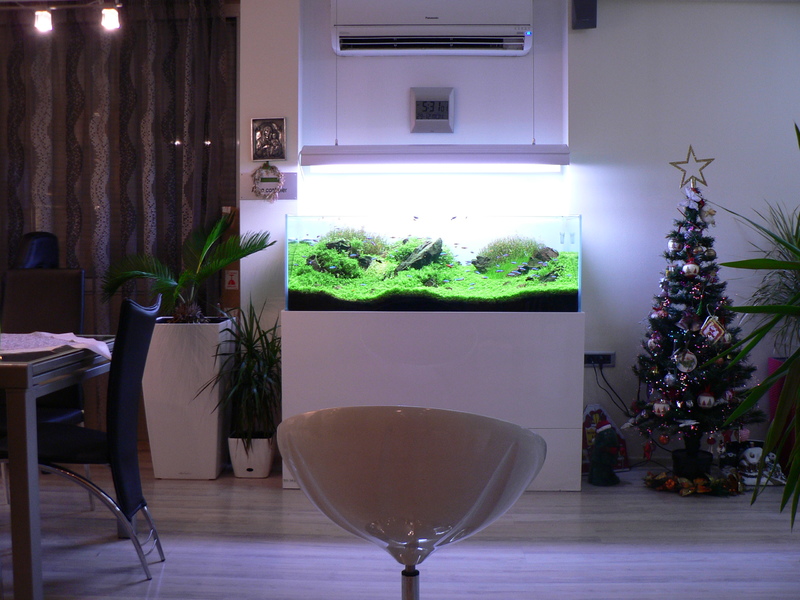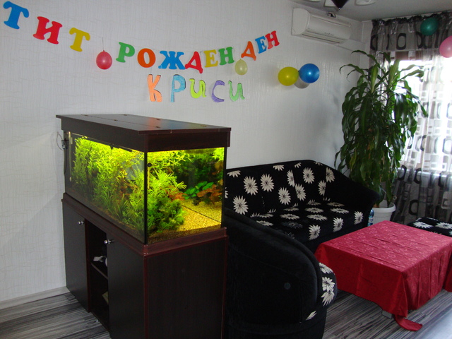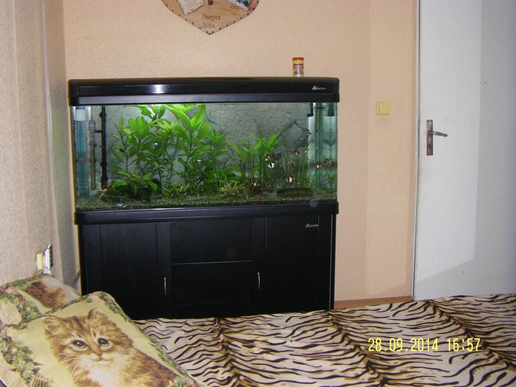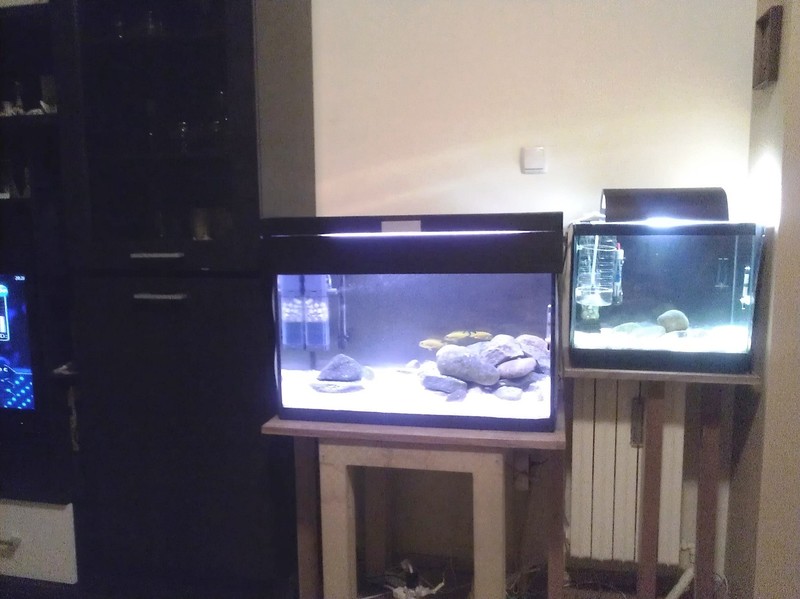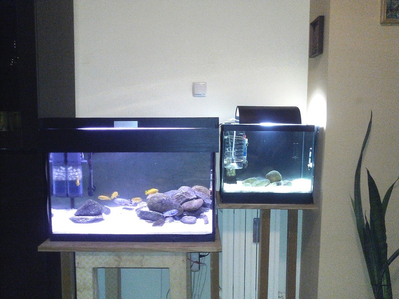 ... впоследствие има идея на мястото на двата аквариума да има един - 120-130 см.