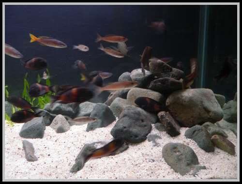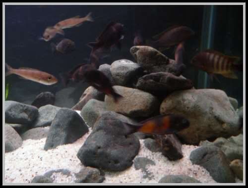 Сетих се, че имаше още един цихлидарник (на Драго) със сменени камъни , но там не е такъв ефекта. Може защото неговия аквариум е по-висок и изглежда празен с подобни камъни...