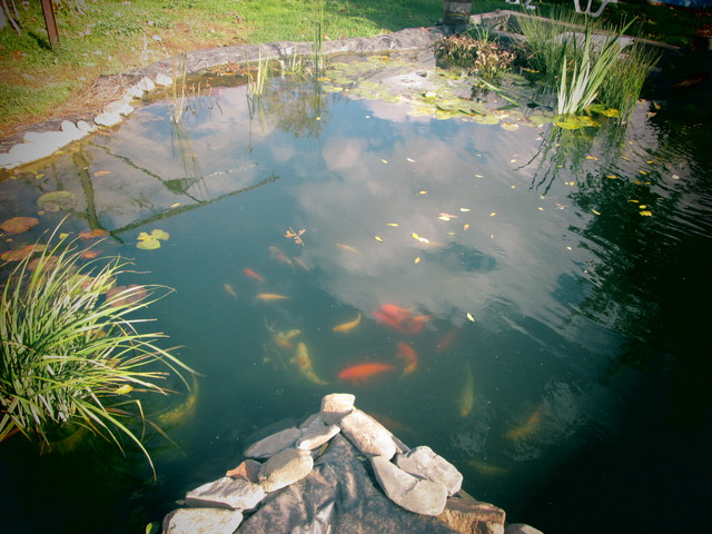 И моите риби плуват още отгоре ,но спрях с яденето преди две седмици ,температурата на водата  е между 8-11 гр на 90 см ми е датчика в момента ,иначе  го покрих миналата събота   с найлон .
