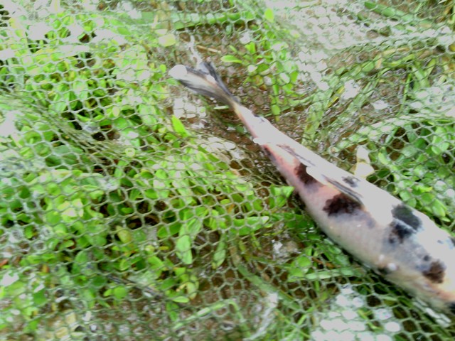 Калиев перманганат в 2 mg/litre за целия обем на езерото ако имаш и други заразени риби