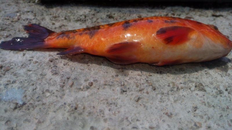 Колеги ,след 9 месеца  без нито една умряла рибка вчера за 2часа ми умряха 8 коита. Най-големите и най-красивите , без никаква видима причина птосто както си плуват спират на дъното започват да дишат тежко и след 20на минути умират. Единствените видими симптоми по жертвите са замъглени очи , въпреки че днес последното което умря не му бяха помътнели очите. Него го изкормих веднага след като спря да диша и отвътре имаше масивен кръвоизлив. Не знам какво става , умират само коита то и почти не остаха де. Всички други комети , караси ,принцеси , телескопи и шишарки са живи. Едната шишарка е голяма само 2 см. и е жива , а 25см. Кои се спомина за минути. Мисля че е газова емболия , но нямат мехурчета с въздух по тялото , само помътняване по очите , а и водата не е сменяна от 2месеца от къде толкоз кислород. Вчера след като започнаха да умират смених водата и изчистих цялото дъно , но днес пак умря едно. Всичко става по обяд в жегата , но водата не е никак топла , направих им засенчване преди няколко дена. Нещо ги трови но не знам какво е защото тука няма от къде да взема тестове за вода , а се паднаха и почивни дни докато поръчам и доставят сигурно и последните 4 коита ще умрът. Ще ми се да знам в какви случаи едри коита могат да измрът в рамките на 1-2часа. Ето снимка на днешната жертва: