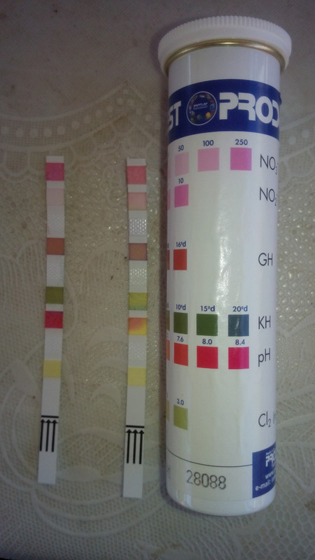 От теста на водата ми прави впечатление и наличието на нитрити, а те са доста токсични за рибите. Нe знам обаче каква е приемливата доза за кои, но моите като ги меря са 0. Солта също така се ползва за неутрализиране действието на нитритите и подобрението след добавянето на сол, може да се дължи на това, а не че е унищожило бактериална инфекция или паразити.